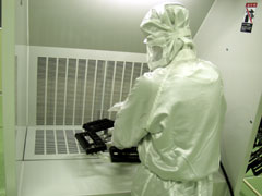 | 塗装の前にエアシャワー室で 入念に。 |