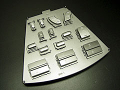 | 小さな部品はジグと呼ばれる台座に 一つ一つ固定します。 |